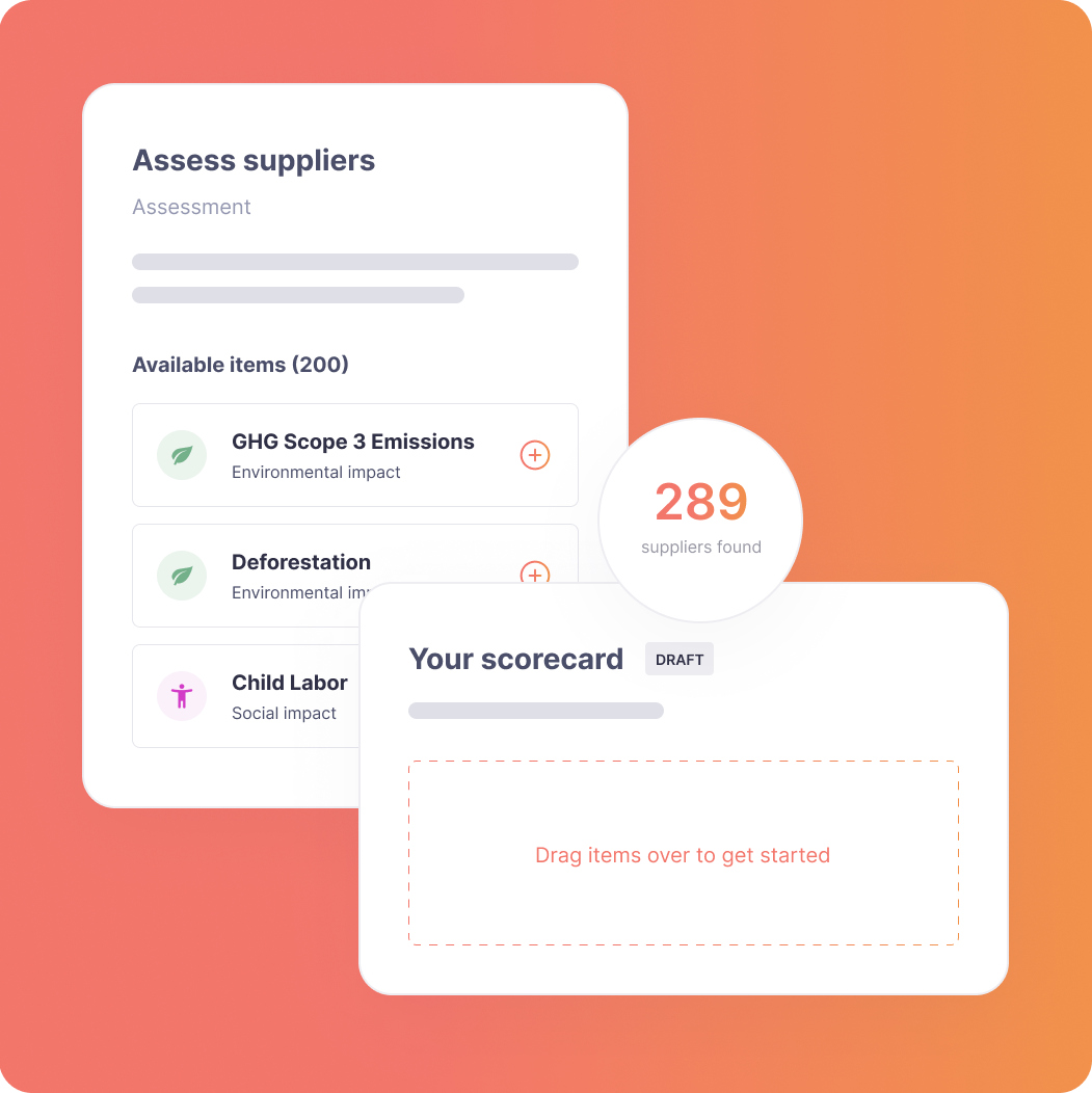 From decarbonization to human rights compliance and everything in between. Use out-of-the-box tailored assessments, or select exactly the topics you want to focus on. One platform to control and prioritize supply chain sustainability, holistically.