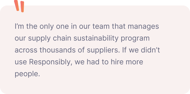 At Chr Hansen, we have started using Responsibly to scale up our supplier engagement program to build a sustainable future and meet our Science based decarbonization commitments. To drive concrete improvement actions with our suppliers, it is essential that we have a transparent overview of the baseline ESG performance data and related risks with different suppliers. Responsibly gives us this data overview in an automated & efficient manner.