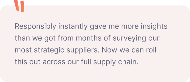 Use Responsibly’s AI to find 100% of a supplier’s risks and communicated actions automatically. Get powerful insights on every supplier pre-engagement, and automate engagement to improve their performance.